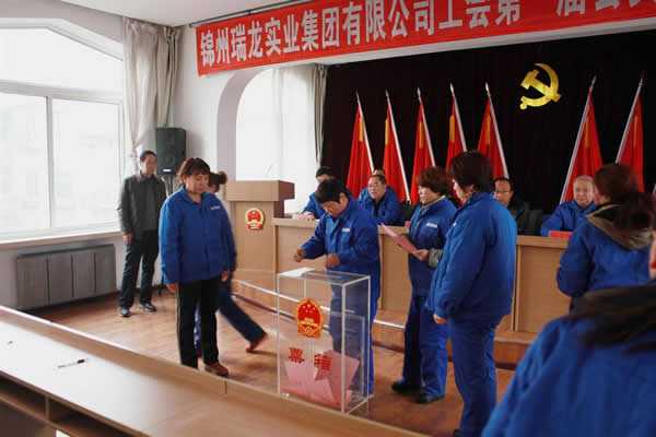 为更好的开展民主直选工会主席工作,进一步加强企业民主管理,激发职工的责任感和使命感,11月19日下午,锦州瑞龙实业集团有限公司工会召开了第一届会员代表大会。公司35名工会会员代表及公司领导齐聚一堂,太和区总工会副主席洪军、副主席柳忠枫出席会议并在主席台就坐。