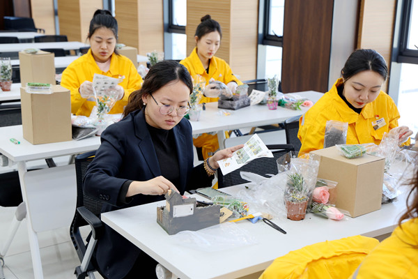 活动伊始,公司工会精心准备了签到鲜花与DIY材料包,传递出节日的温暖问候。随着女职工委员会主任对全体女职工致诚挚的敬意与问候拉开序幕,赠花仪式将活动氛围推向首个高潮——每位“女神”手执鲜花,脸上洋溢着幸福笑容。随后,女职工们通过视频学习微景观制作技巧,纷纷化身“园艺设计师”,在可爱的花盆中栽种绿植、铺陈苔藓、点缀砂石,创作出一个个灵动雅致的“迷你花园”。