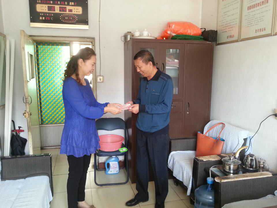 在建国65周年即将到来之际,凌河区总工会副主席陈海包带领工会有关人员,于9月16日走访慰问了省级、市级劳动模范,代表区总工会向他们致以节日的问候和良好祝愿。感谢他们为凌河事业发展做出的重要贡献,并送上节日慰问金。