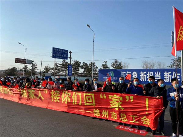 4月1日,我市驰援武汉医疗队最后一批队员胜利返锦。下午4时,市总工会组织党员干部到锦州东高速口集合,列队欢迎医疗队员凯旋,印有“锦州市总工会”六个大字的旗帜迎风飘扬,“春暖花开,载誉归来!英雄们,娘家人接你们回家!”20米长的条幅写满了工会娘家人对医疗队员的敬意和问候。