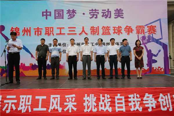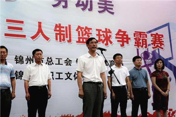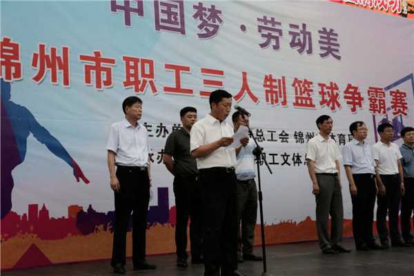为推进锦州市职工文化体育事业的健康发展,营造全市职工积极健身的良好氛围,市总工会与市体育局联合举办的全市职工三人制篮球争霸赛于7月10日下午在市工人文化宫广场举行开幕仪式。市委常委、市委秘书长赵金波出席开幕仪式并为比赛开球,市委宣传部常务副部长罗冠华,市总工会主席孙志海,市体育局局长张海波等相关领导, 31支参赛队领导、队员及裁判员参加了开幕仪式。