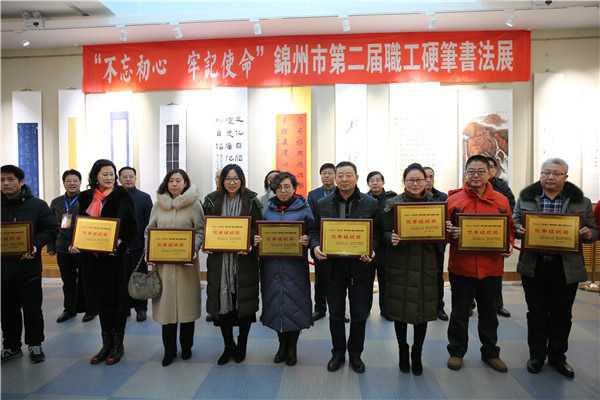律回春渐,翰墨飘香。为深入学习宣传党的十九大精神,热情歌颂党的光辉历程和丰功伟绩,1月9日,“不忘初心、牢记使命”锦州市第二届职工硬笔书法展在市博物馆举行开幕式暨颁奖仪式。市总工会常务副主席吴玉林出席开幕式。