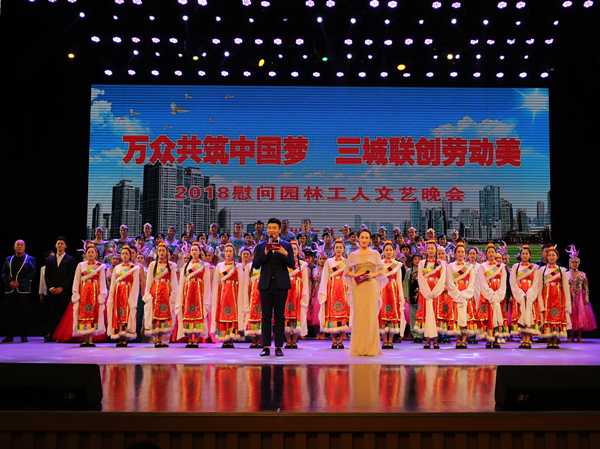 9月5号晚,市工人文化宫内舞姿奔放,歌声飞扬,由市总工会主办的“万众共筑中国梦 三城联创劳动美”慰问园林工人专场晚会在这里举行。市总工会主席孙志海出席活动。