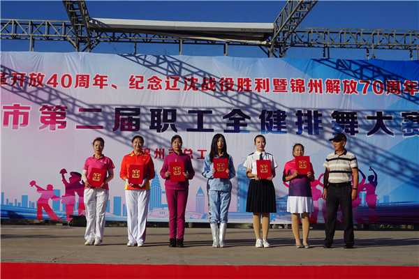 近几年,市总工会积极推广普及全健排舞,多次举办全健排舞培训班、展演等活动,全市全健排舞团队已成为锦州市职工文化活动的一支骨干劲旅,树立起了锦州职工文化的新品牌。本次比赛分广场组和职工组,共有17支代表队近500人参赛。赛场上,队员们身着色彩艳丽的服装,以优美和富有活力的动作,将全健排舞风韵诠释得酣畅淋离,展现了当代工人的活力与风采。