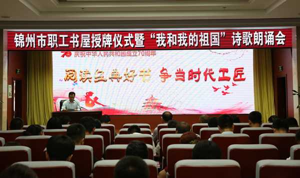 6月6日上午,2019年锦州市级职工书屋示范点授牌、赠书仪式暨“我和我的祖国”诗歌朗诵会在市职工会馆举行。市总工会副主席刘文全出席活动,各县(市)区总工会宣教部长、市直基层工会主席及各级职工书屋负责人参加活动。