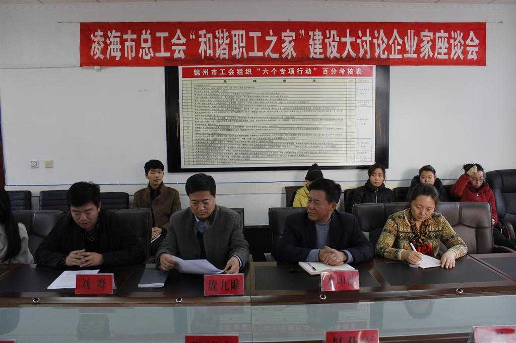 在全市上下都在深入开展大讨论活动的浓厚氛围下,按照全民参与、广泛讨论的活动要求,11月12日下午,凌海市总工会邀请各位优秀民营企业家召开“和谐职工之家”大讨论企业家座谈会,就企业工会组织建设、和谐劳动关系发展、建家活动推进等重要问题展开大讨论,为全市工会工作发展出谋划策。