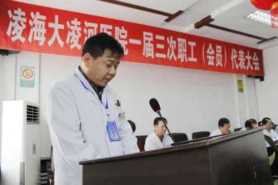 2015年4月3日下午2时30分,凌海大凌河医院一届三次职工(会员)代表大会在一楼会议室召开。出席这次会议的共有45名代表和3位列席代表,会议由工会主席佟国库主持。