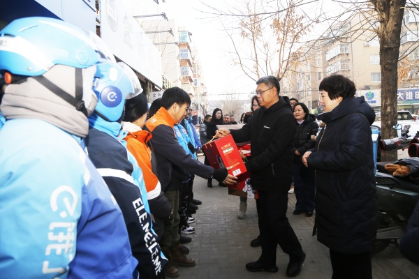 慰问组一行来到新业态企业饿了么站点,深入了解新就业形态劳动者群体的权益保障和生活状况,为他们送去了“暖新礼包”和慰问金,表达了对这一群体辛勤付出的认可和尊重。同时提醒大家在工作的同时也要做好御寒保暖,遵守交通规则,注意劳逸结合、保护自身健康。