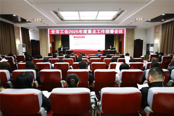 会上,市总工会分管领导和相关部门负责人对全市工会2025年重点工作进行培训部署。市总工会机关全体同志、文化宫领导班子;各县(市)区总工会领导班子、相关部门负责人参加会议。