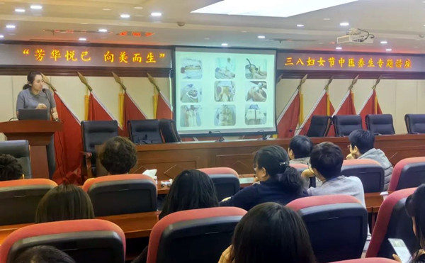3月6日下午,在锦州八中,辽宁省名中医传承工作室负责人、锦州市中医医院崔小清教授,为女教职工带来一场精彩的中医养生专题讲座。崔教授在中医养生领域深耕多年,有着丰富的临床经验和深厚的学术造诣。她从中医养生核心思想、四季养生要点、饮食调理原则、经络穴位保健、情志调节、健康生活方式六个方面为大家进行了宣讲。在经络养生环节,崔教授现场示范了一些简单的穴位按摩手法,按摩足三里穴,能增强脾胃功能;按压合谷穴,缓解头痛;按摩内关穴,可宁心安神……女教职工们认真学习,纷纷动手尝试,现场气氛热烈。最后,崔教授还通过“望闻问切”的方式,为大家进行详细的体质辨识,量身定制个性化的养生方案,女教师们纷纷表示收获颇丰。