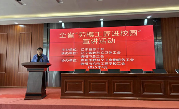 在“五一”国际劳动节来临之际,为大力弘扬劳模精神、劳动精神和工匠精神,激励广大青年学生走技能成才、技能报国之路, 4月23日,全省“劳模工匠进校园”宣讲活动在锦州市机电工程学校举行。此次活动由辽宁省总工会主办,辽宁省教科文卫体工会、锦州市总工会承办,活动特邀辽宁省劳动模范、锦州港股份有限公司杂货码头公司副经理丁成涛进行宣讲。