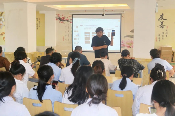 “于老师教会了我们技术,就像授之以渔,能让我们举一反三往前走?!苯踔菔械诙皆汗せ嶂飨粞藓煺嬷康厮档馈=?,锦州工匠学院“送技能进基层”活动中,辽宁理工职业大学数字商务学院的于洪军讲师将短视频制作的金钥匙精准递到了市第二医院76名参训职工手中。
