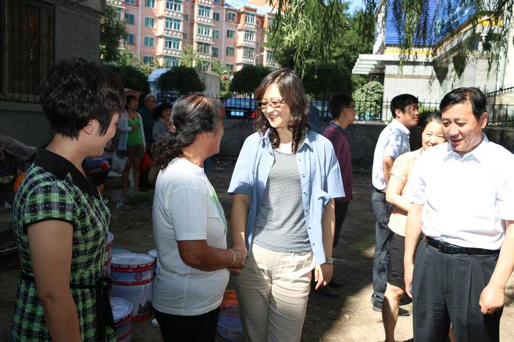 赵璟一行分别来到古塔区南街街道和凌河区榴花街道拆违重建施工现场,为一线建设者送去矿泉水、茶叶等消暑饮品。全市拆除违章专项行动以来,市总工会、团市委和市妇联积极响应市委、市政府的号召,重视和支持综合整治行动,第一时间向全市广大职工、青年和妇女发出倡议。同时,他们三家共同筹资50多万元,在古塔区南街街道、凌河区榴花街道分别建设职工幸福大院和职工幸福广场。两处工程硬化的面积约5000平方米,美化绿化的面积达1000平方米,还配套了各种健身器材。赵璟希望通过工青妇三家和建设者共同的努力,早日建成这两个带有示范性的工程,也希望社区居民积极参与市容综合治理活动,共同维护好环境。