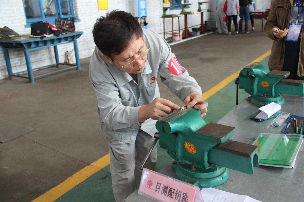 这些选手是经历理论考试、实际操作过关斩将脱颖而出的“制作行家”,在赛场上,他们又操起钻头、角磨、平锉和扁铲,进行钻鸡蛋壳、灯泡磨铁丝、目测配钥匙、錾圆钢“四关”的极限挑战。参加竞赛的50岁的周师傅说:“理论考试我下了功夫,实际操作比赛我是有备而来,这些绝活我心里真没底。”表示决不服输,要和年轻人比高低。