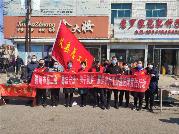为深化广大职工的法治教育,进一步增强农民工学法用法守法的观念,4月11日,由市总工会、义县总工会的工会干部和律师志愿者组成的公益法律服务队到义县七里河镇大集开展“尊法守法?携手筑梦”普法宣传活动,为被拖欠工资的农民工提供法律咨询,以及调解、仲裁和诉讼等帮助。