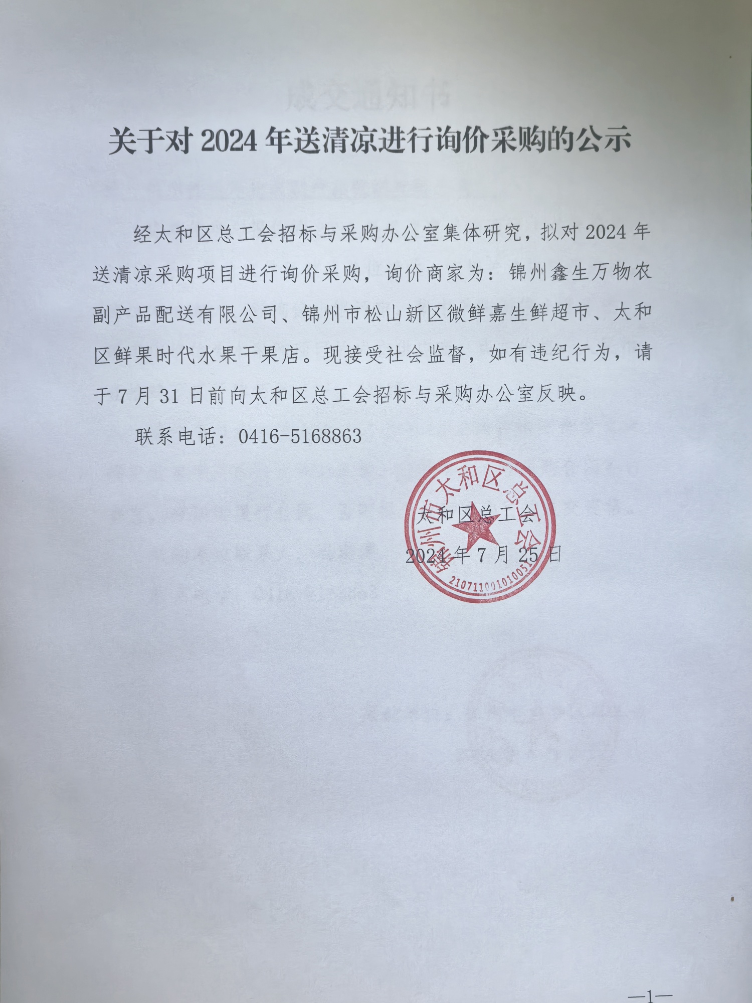 太和区总工会关于对2024年送清凉进行询价采购的公示