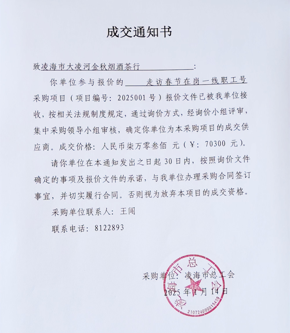 古塔区总工会对2025年度两节送温暖走访慰问活动进行询价采购的成交通知书