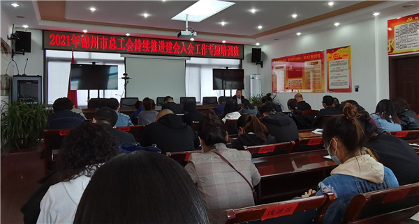 为落实做好省委巡视整改“回头看”反馈建会入会工作问题整改工作的要求,5月8日,锦州市总工会举办2021年持续推进建会入会工作专题培训班,市总党组成员、副主席孟军、市总组织民管部以及各县区、乡镇街工会干部共50余人参加了培训。