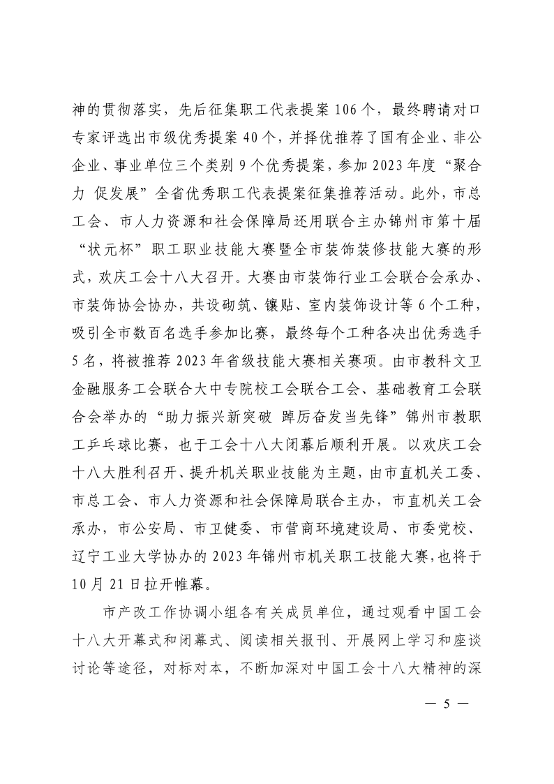 锦州市产业工人队伍建设改革工作协调小组专报(2023第2期)