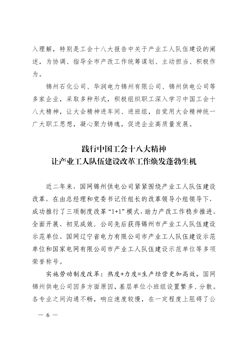 锦州市产业工人队伍建设改革工作协调小组专报(2023第3期)