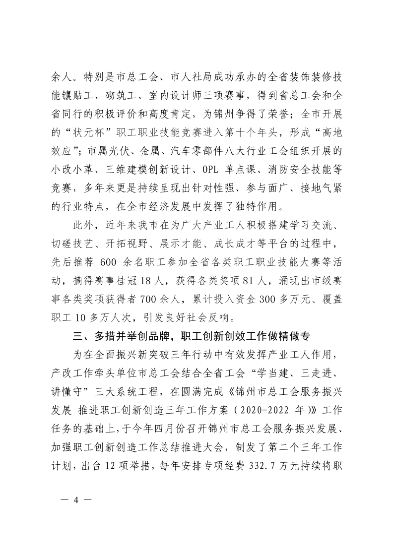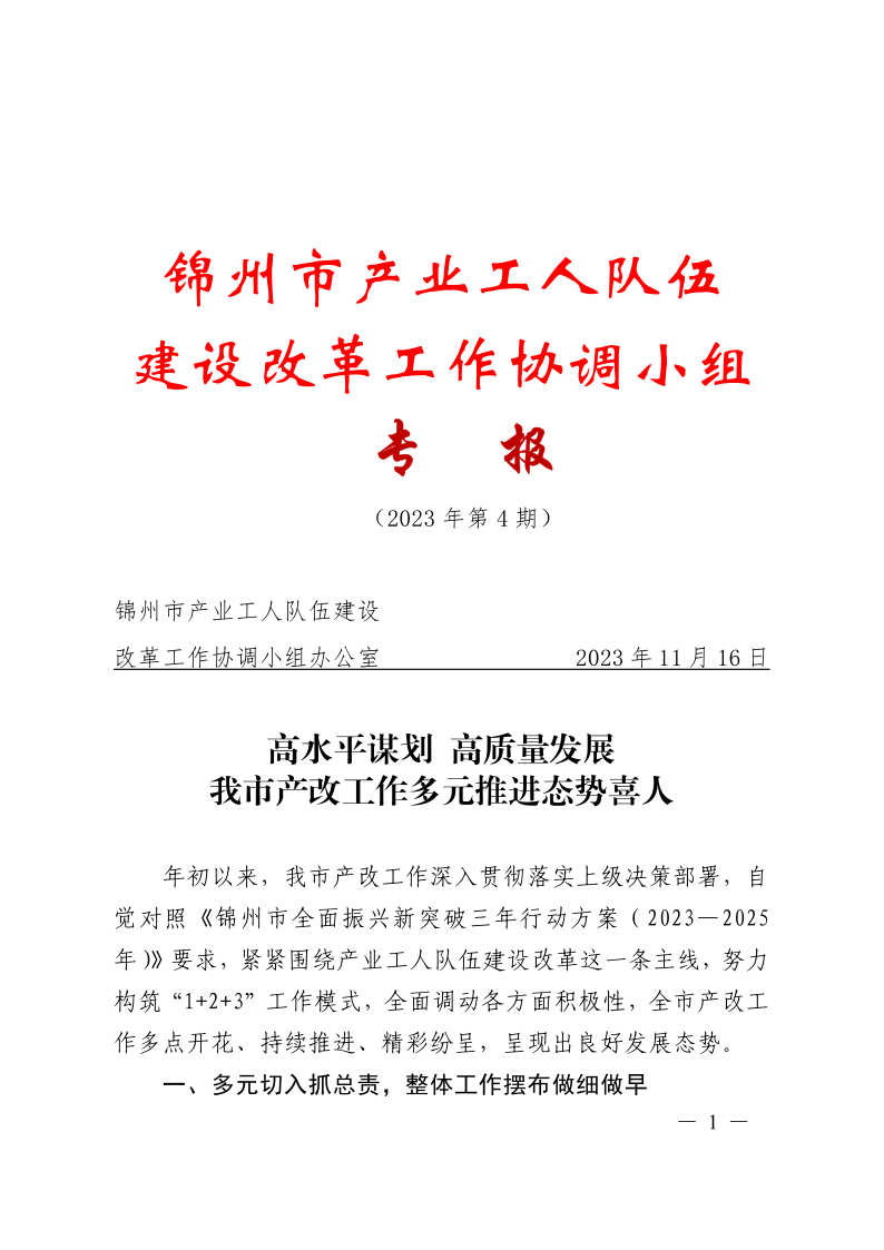 锦州市产业工人队伍建设改革工作协调小组专报(2023第4期)