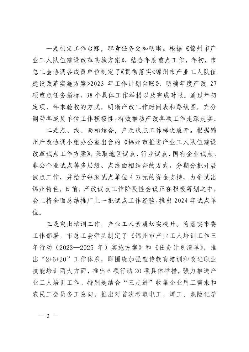 锦州市产业工人队伍建设改革工作协调小组专报(2023第3期)