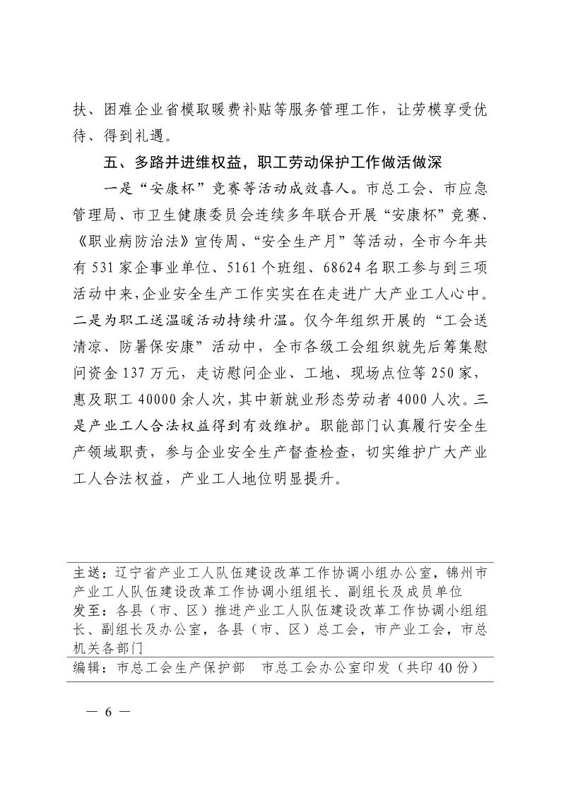 锦州市产业工人队伍建设改革工作协调小组专报(2023第5期)